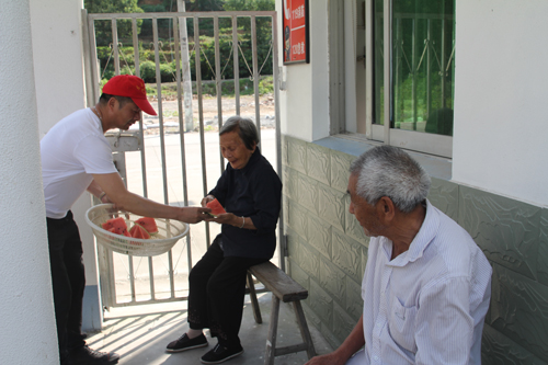 慰問中,黨支部成員們將好心人捐贈給黃巖慈善義工隊(duì)的西瓜切好,熱情地送到老人們的手中,并詳細(xì)詢問了老人們的生活、身體狀況等,叮囑老人保重身體,送上端午祝福。老人們臉上洋溢著幸福的笑容,對大家的善舉深表感謝。